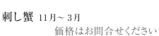 蟹漁は期間が限定されており、一年中が「旬」ではない為、是非11月頃から3月の「旬」な時期に味わっていただきたい食材です。